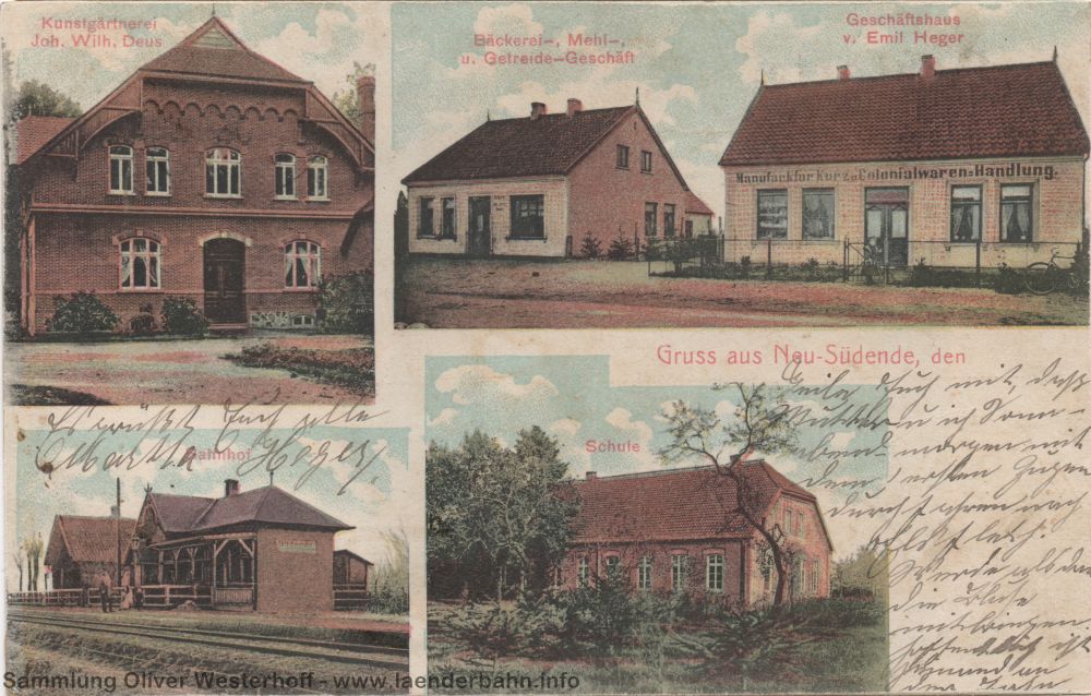 Das kleine Gebäude der Station in Neusüdende ist auf einer seltenen Ansichtskarte abgebildet.